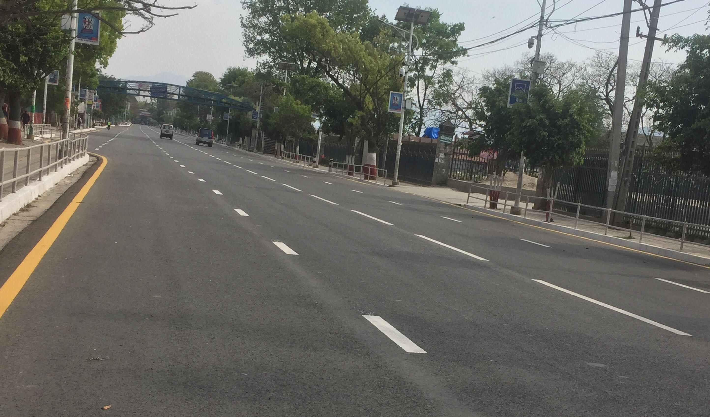 काठमाडौं, चैत्र ३० गते आईतबार । कोरोना भाइरस (कोभिड–१९)का कारण बन्दाबन्दी (लकडाउन) गरिएपछि जनजीवनमा असजिलो भए पनि कतिपय कामलाई भने सहज भएको छ । काठमाडौँ उपत्यकामा कालोपत्रे (ओभर–ले) गरिएका सडकमा ट्राफिक चिह्न निर्माण तथा रङरोगनका लागि भने अहिले सहज भएको छ ।