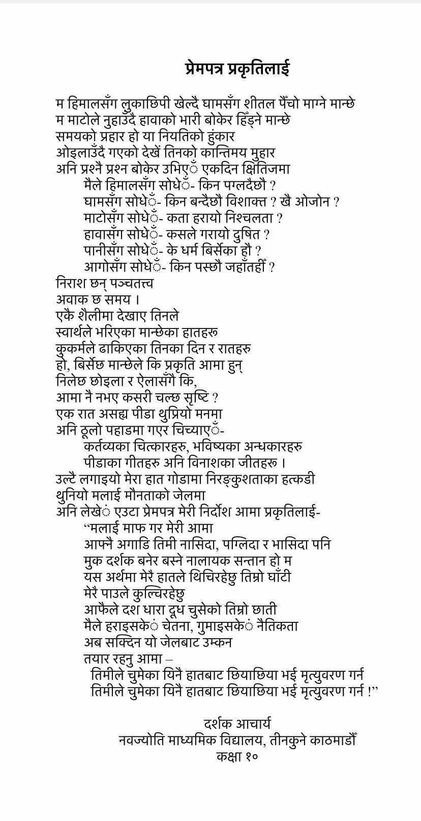 प्रथम स्थान हासिल गरेको कविता यस प्रकार छ-